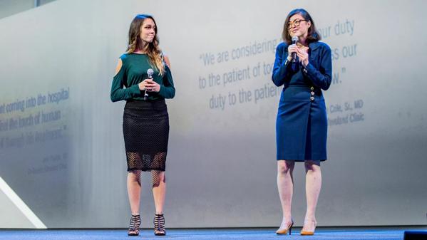 Charity Tillemann-Dick and Esperanza Tufani on stage during the Cleveland Clinic Medical Innovation Summit.