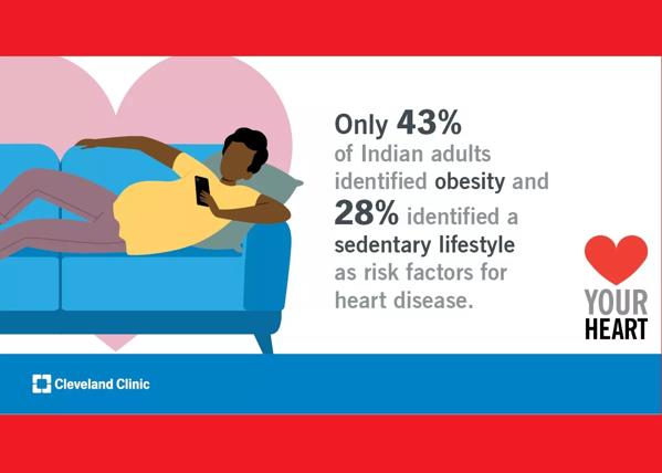 NEW DELHI: A survey of Indian adults commissioned by global health system Cleveland Clinic has found the majority of Indians across the country do not recognize key risk factors for heart disease. Only 43% identified obesity and 28% a sedentary lifestyle as risk factors, while just 51% recognized smoking or vaping as having an impact on one’s risk of developing heart disease.