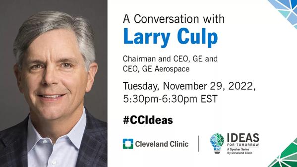 Tom Mihaljevic, M.D., Cleveland Clinic CEO and President, and the holder of the Morton L. Mandel CEO Chair, will welcome H. Lawrence (Larry) Culp Jr., Chairman and CEO of General Electric and CEO of General Electric Aerospace, to join him as part of the speaker series, Ideas for Tomorrow.