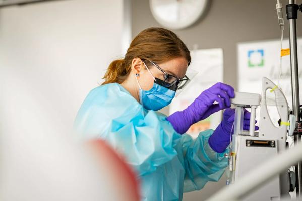 Research nurse coordinator Danielle Kellner readies the infusion.