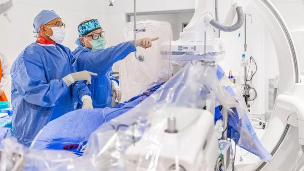 Following approval from the U.S. Food and Drug Administration on Nov. 7, Cleveland Clinic used a first-of-its-kind ultrasound-based renal denervation on a patient. The Paradise system, created by Recor, works to lower blood pressure by denervating the sympathetic nerves surrounding the renal arteries. The system delivers two to three doses of 360-degree ultrasound energy through the main renal arteries to the surrounding nerves, reducing overactivity that fuels hypertension. The system is also water-cooled to protect the renal artery wall. Uncontrolled or resistant hypertension is when your blood pressure remains high or unmanaged, despite taking medications. People with hard-to-treat, resistant hypertension have an even higher risk of stroke, kidney disease and heart failure. “We were fortunate to participate in the pivotal trial of this system, which gave us an early understanding of the device. The safety of this outpatient procedure in our experience, and as demonstrated in the trial, is exciting as it opens up a new avenue of treatment for appropriately selected patients with hypertension,” said Amar Krishnaswamy, M.D., Section Head, Interventional Cardiology at Cleveland Clinic. “As physicians, we strive to provide the most advanced and evidence-based treatment for hypertension patients. Renal denervation is another effective tool that we are excited to be able to offer to help patients with difficult to control hypertension. Our expertise in the diagnosis and treatment of hypertension allows us to select the patients that will most benefit from this new technology,” said Luke Laffin, M.D., Co-Director, Center for Blood Pressure Disorders. “Renal denervation can be an effective adjunctive therapy for blood pressure control in selected patients, and we are now able to offer this option as an advancement to currently available conventional therapies,” said George Thomas, M.D., Director, Center for Blood Pressure Disorders. “Our team of nephrologists and cardiologists in the Center for Blood Pressure Disorders will work collaboratively to identify patients most likely to benefit from this procedure to manage hypertension and improve outcomes.” “We know that only a third of people with high blood pressure in the United States have it under control, and it’s great to have a new option to offer patients, when lifestyle modifications and medicine are not working,” said Dr. Aravinda Nanjundappa, interventional cardiologist at Cleveland Clinic, who also performed the first procedure at Cleveland Clinic.