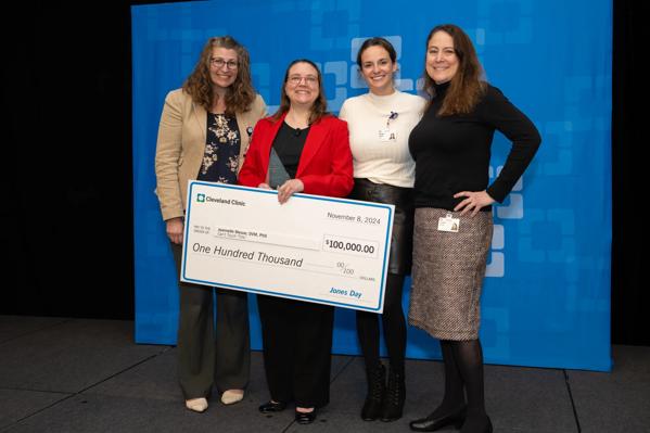 The Innovation Challenge showcased three groundbreaking medical technologies addressing challenges in weight management, bacterial infections, and heart valve repair. Jeannette Messer, DVM, PhD, was awarded the $100,000 prize from Jones Day for her innovative antimicrobial antibody therapeutics that could revolutionize how bacterial infections are treated.