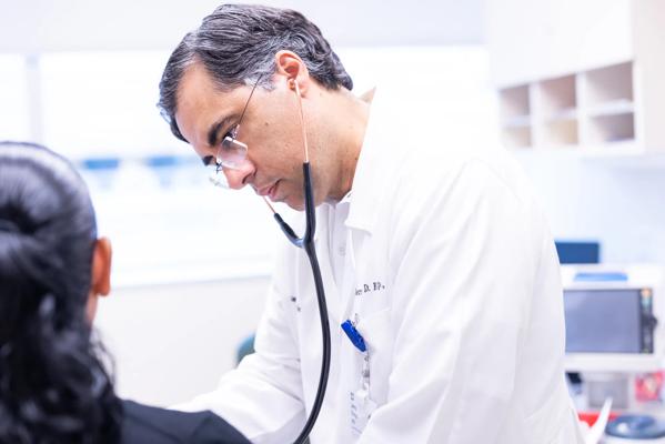 Jerry Estep, M.D., examines a patient.